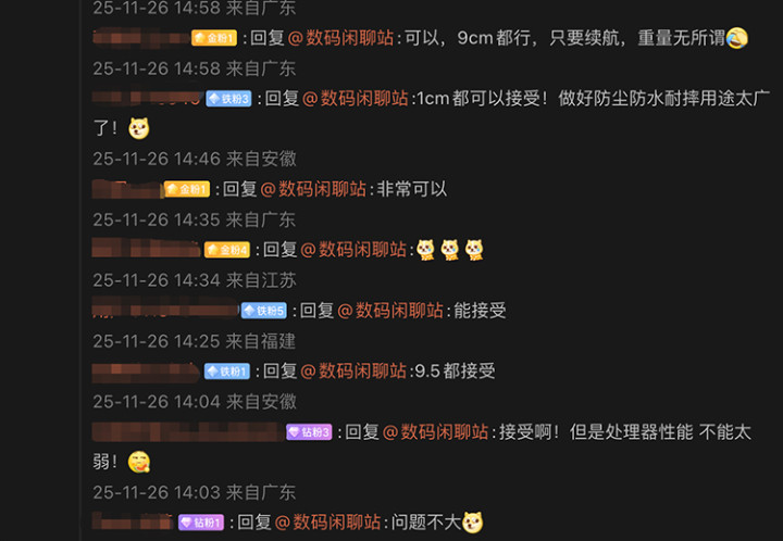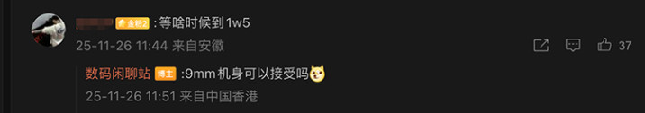 不过按照目前技术来看,电池越大,手机就没法维持轻薄。有网友评论想要15000mAh的手机,博主回复机身厚度可能超过9mm,不少网友表示可以接受,起码比多拿一个充电宝方便一点。