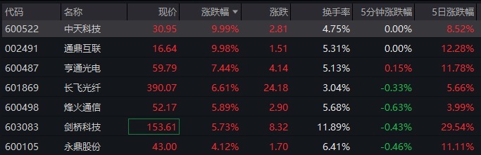 光纤概念走强,中天科技、通鼎互联涨停,长飞光纤、亨通光电等跟涨。消息面上,今年以来,光纤行业呈现出“产品量价齐升”的景气态势。