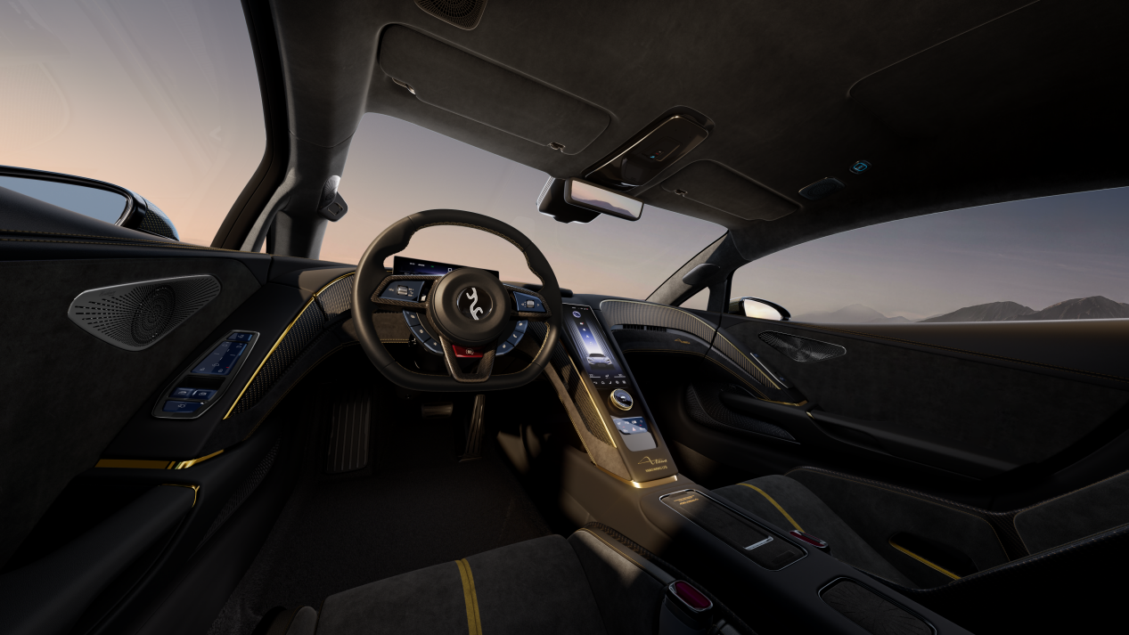 如果说2000万定价让全世界好奇,那“破晓时刻”的设计方案则给出了最令人动容的答案。设计灵感源自仰望U9X打破纽北世界纪录那天的清晨——当第一缕金色阳光冲破云层、驱散赛道阴霾,设计师将那一刻淬炼成一整台车。