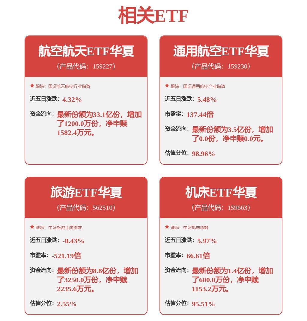资金面来看,航空航天ETF华夏(159227)已连续4个交易日获资金净流入,区间净流入额为1.76亿元,最新规模达44.06亿元,创历史新高,位居同指数规模第一。
